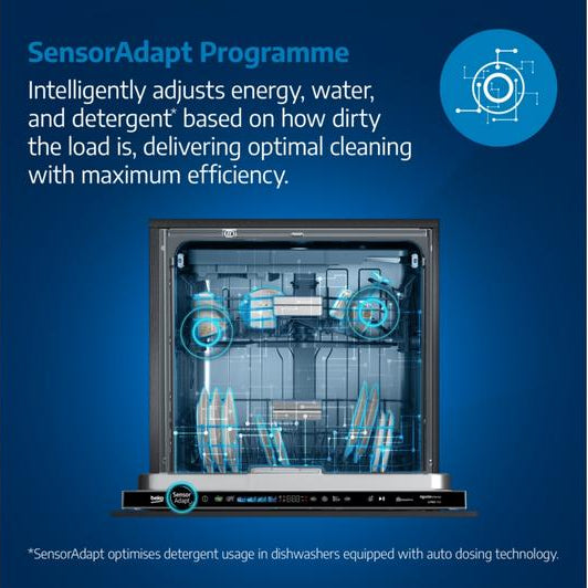 SensorAdapt takes our Auto programme to the next level. It cleverly adjusts energy, water, and detergent usage based on how dirty your load is, now analysing it on 4 different levels. This ensures precise cleaning while saving time, energy, water, and detergent for optimal results. 1