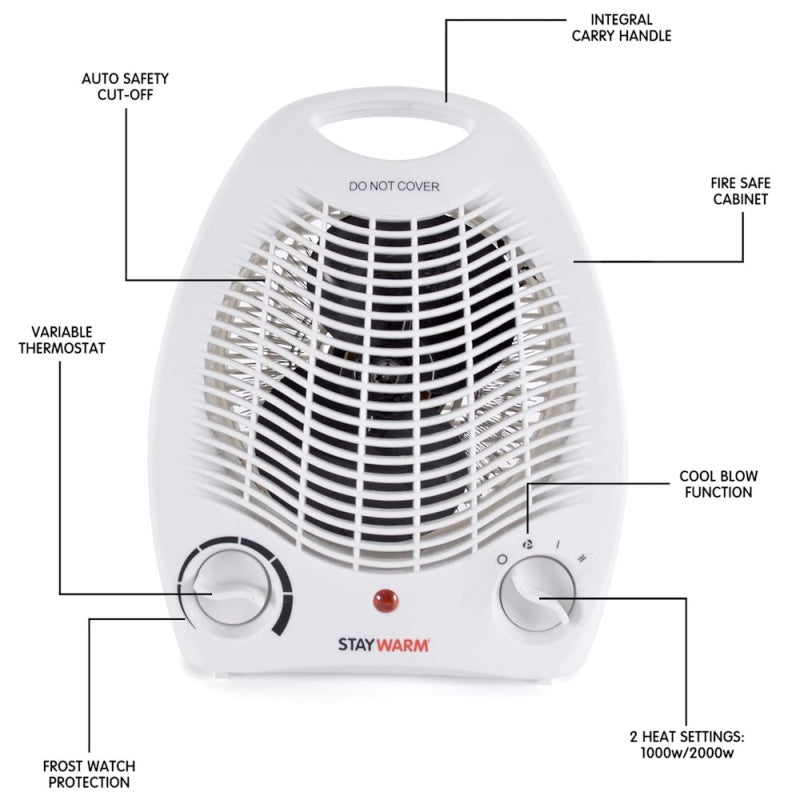 Lloytron Staywarm 2000W Upright Fan Heater (BEAB) with Two Heat Settings and Cool