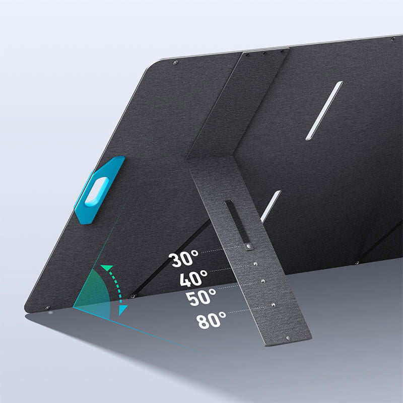 The Anker Solix PS400 is a high-power, foldable solar panel designed for portable and backup solar charging. With 400W of output, it is ideal for powering or recharging large-capacity power stations, off-grid setups, and outdoor systems. It uses monocrystalline solar cells with ~21% efficiency, and is IP67 rated for dust and water resistance. The panel includes adjustable stands for optimal sun angle and comes with MC4 and MC4-to-XT60 cables for compatibility with power station inputs.