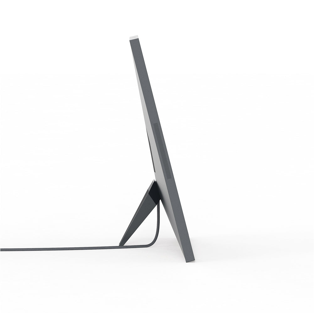 - Portrait or landscape orientation with a minimalist frame and custom stand included