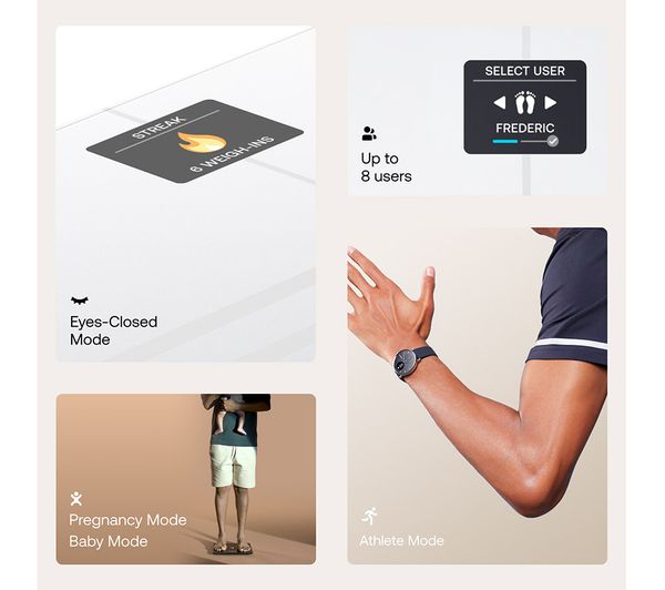 - Life-stage modes: Athlete, Pregnancy, Baby, Eyes-Closed Mode