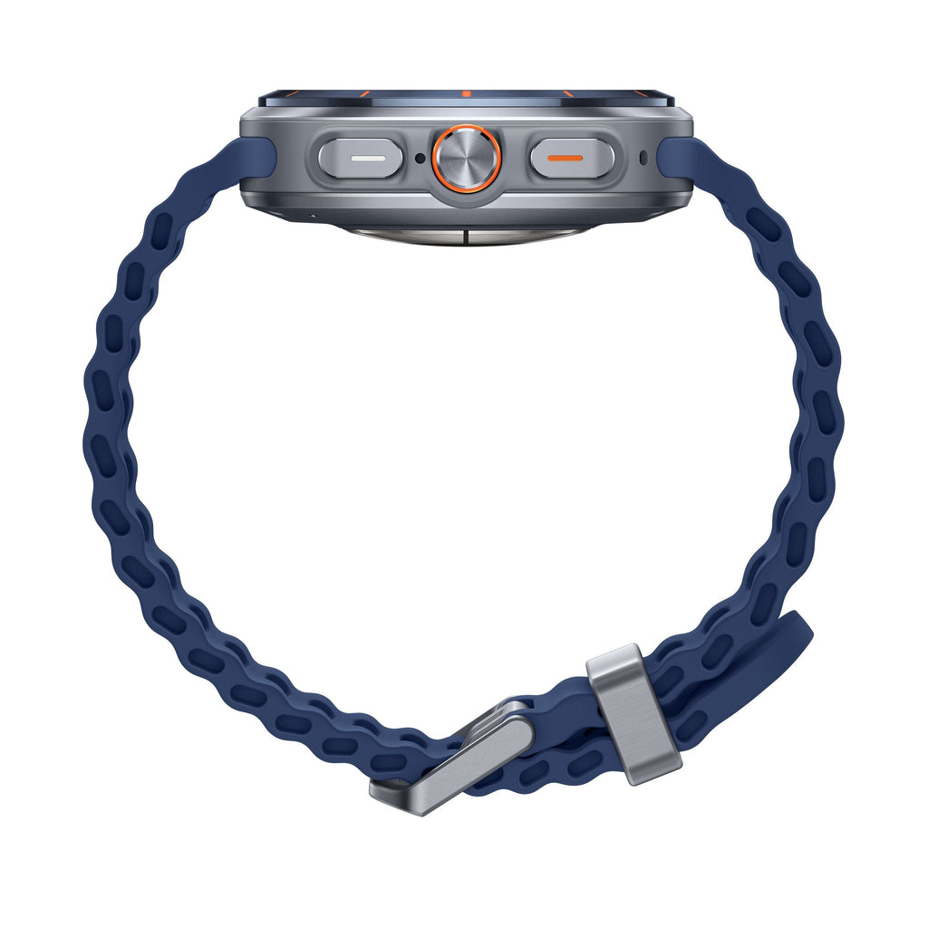 Galaxy Watch Ultra is crafted with precision and built for adventure. The 1.5-inch Super AMOLED display is surrounded by a durable titanium casing - equal parts rugged and refined. The new blue colourway ensures there’s a look to suit every taste. Favourite workouts can be launched in a single press with the Quick Button, while upgraded 64GB storage (double the previous model) gives you even more space for music, apps, and workouts on your wrist. The huge 590mAh (typical) battery will comfortably see you through an ultra-marathon or weekend mountain trek, and when it’s time to power up, wireless fast charging won’t have you waiting around for long