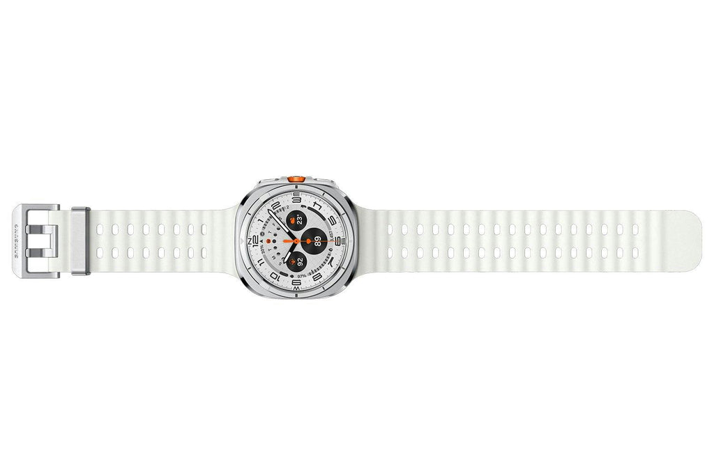 Galaxy Watch Ultra is crafted with precision and built for adventure. The 1.5-inch Super AMOLED display is surrounded by a durable titanium casing - equal parts rugged and refined. The new white colour way ensures there’s a look to suit every taste. Favourite workouts can be launched in a single press with the Quick Button, while upgraded 64GB storage (double the previous model) gives you even more space for music, apps, and workouts on your wrist. The huge 590mAh (typical) battery will comfortably see you through an ultra-marathon or weekend mountain trek, and when it’s time to power up, wireless fast charging won’t have you waiting around for long