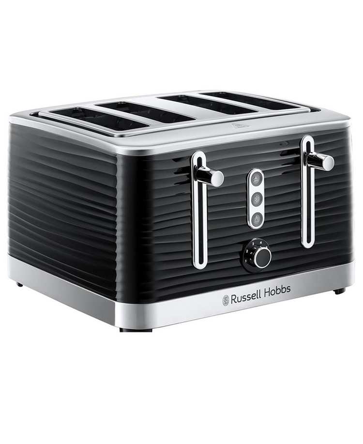 Make a stunning statement on your kitchen counter with the inspire 4 slice black toaster. Combining a classic, clean black with a strong stainless steel this toaster adds a touch of class to any kitchen. Be drawn in by its unique design of entrancing, textured ripples that endlessly wrap around every aspect. With 4 large slots it’s the perfect size to bond over breakfast with those that matter most. So switch off from the world, push down the lever and get back to truly enjoying life with a delicious breakfast and great company.