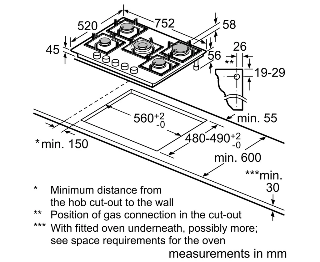 Required niche size for installation (HxWxD mm) : 45 x 560 x (480 - 490) |