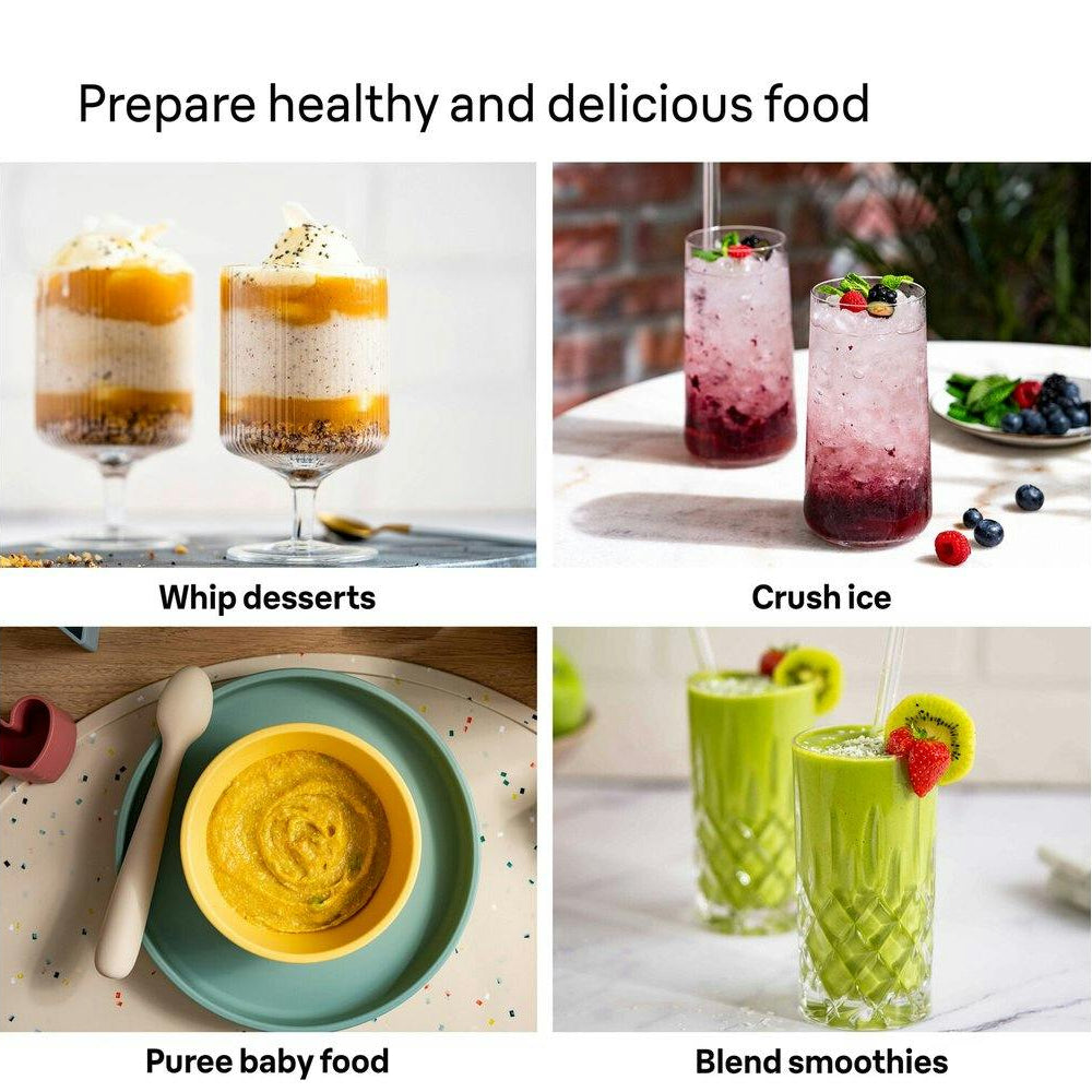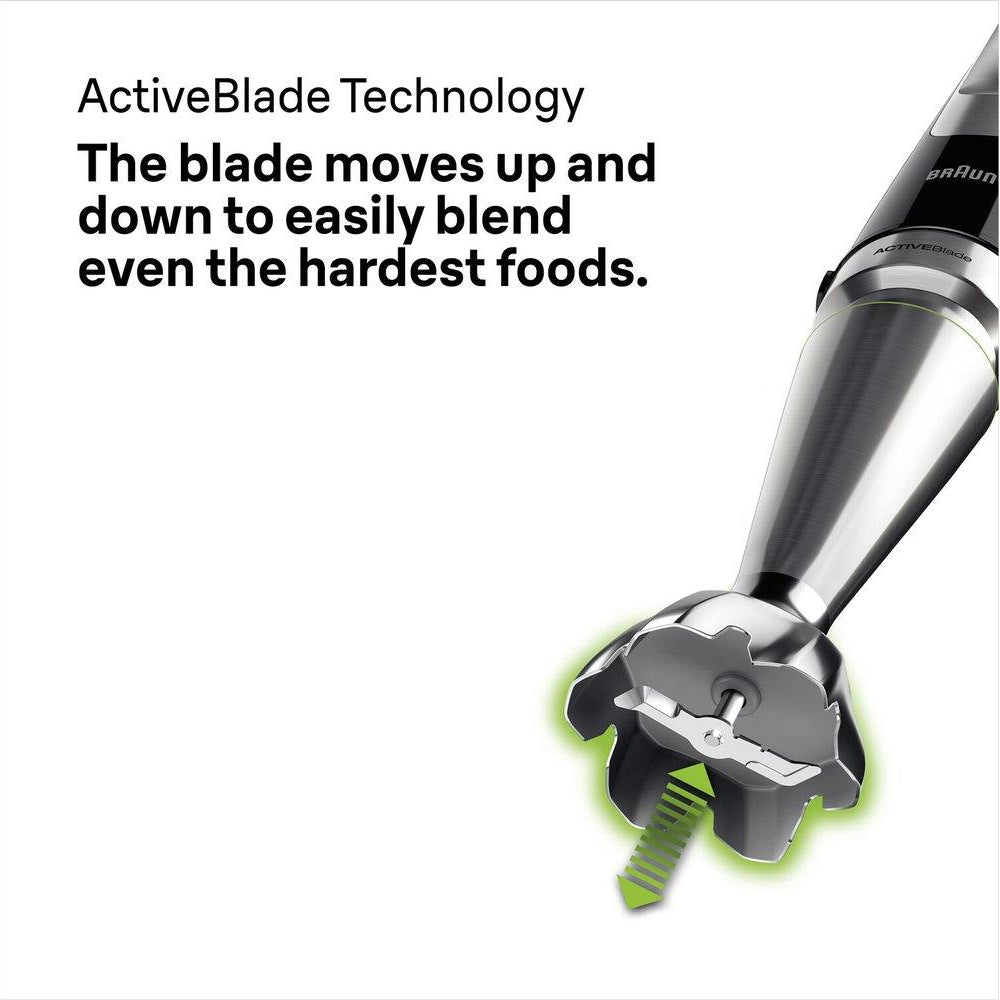 The world's first ActiveBlade technology incorporates a flexible shaft that moves the blade up and down resulting in 2x finer blending.