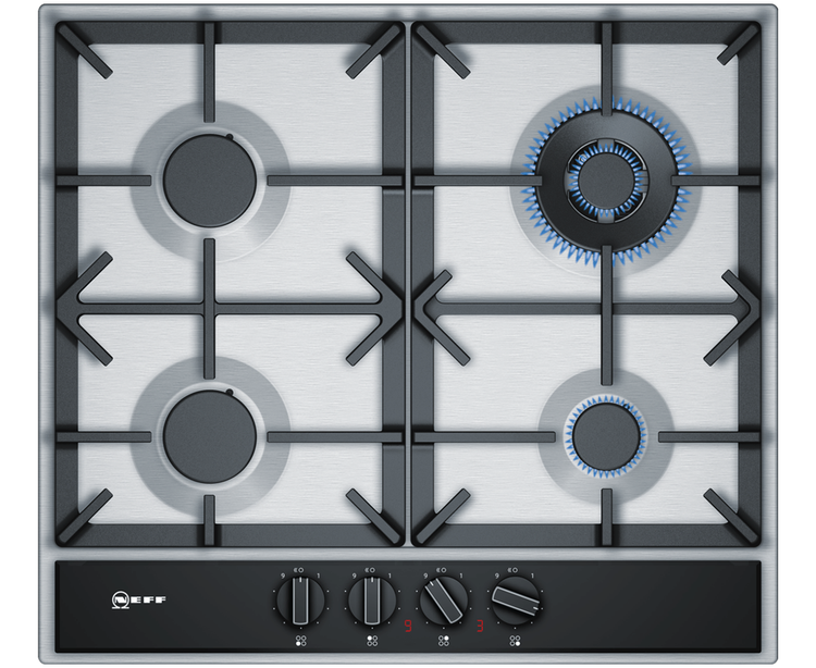 - 2-stage residual heat indicators: indicates which burner parts and pan supports are still hot.