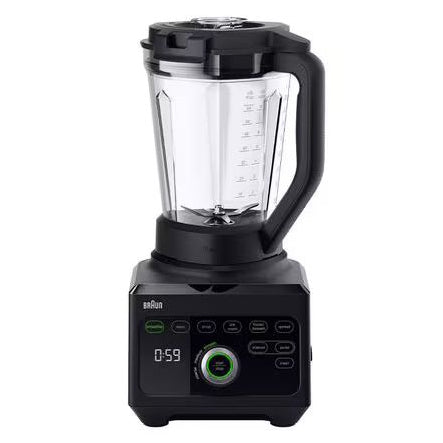 Braun’s PowerBlend 9 Jug blender JB9040BK is a powerhouse kitchen performer with a sophisticated range of new technologies. Its iTextureControl lets you customize your blends from very smooth to coarse – and 18 food programs automate your texture adjustment in three effortless steps. The TriAction Technology jug delivers 60 % finer and 4x faster blending. And you’ll enjoy 1600 watts of power and up to 45,000 rpms for high quality blending results with a German- made PrecisionEdge blade that effortlessly emulsifies even the toughest ingredients.