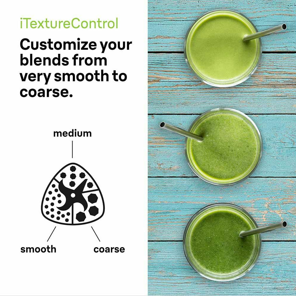 PowerBlend 7, with iTextureControl, let’s you customize your blending with three textures and nine food programs tailored to your taste. Coupled with a potent 1400 W motor and speeds up to 30,000 RPMs, PowerBlend 7 is designed with TriAction Technology for precise blending by eliminating blind spots and swiftly redirecting ingredients. The coupling that is both metal-reinforced for more durability and rubber-coated for a quieter process define its character.