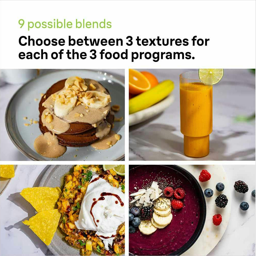 Personalize your blend with 9 programs. 3 food programs x 3 textures.