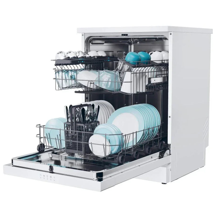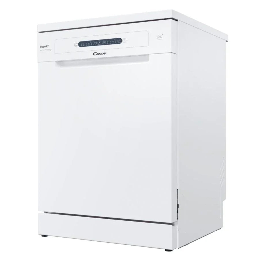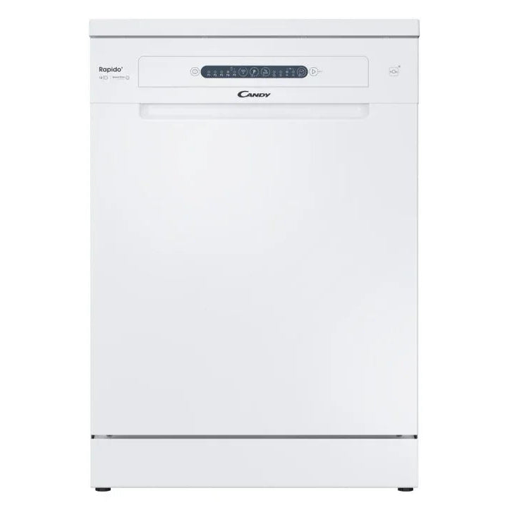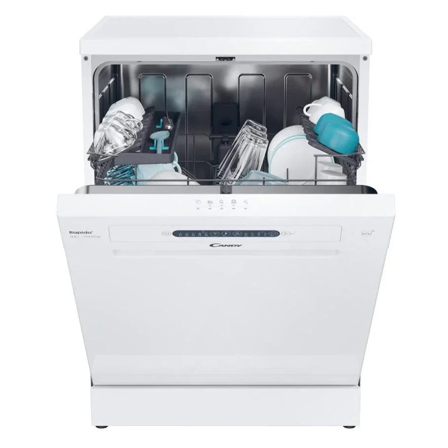 The Candy Rapido' CF 3E9L0W-80 is a full-size, freestanding dishwasher that's designed to save you time and effort. It features a wide range of rapid cycles, so you can get your dishes clean quickly and easily, without sacrificing performance. The MAXI-TUB is the most spacious tub in its class, so you can load even the largest items. Plus, the Candy Rapido' is smart too. It uses the hOn app to learn your washing habits and provide personalized solutions, so you can get the best possible results every time. You can also control the dishwasher remotely using the app or Amazon Alexa or Google Assistant.