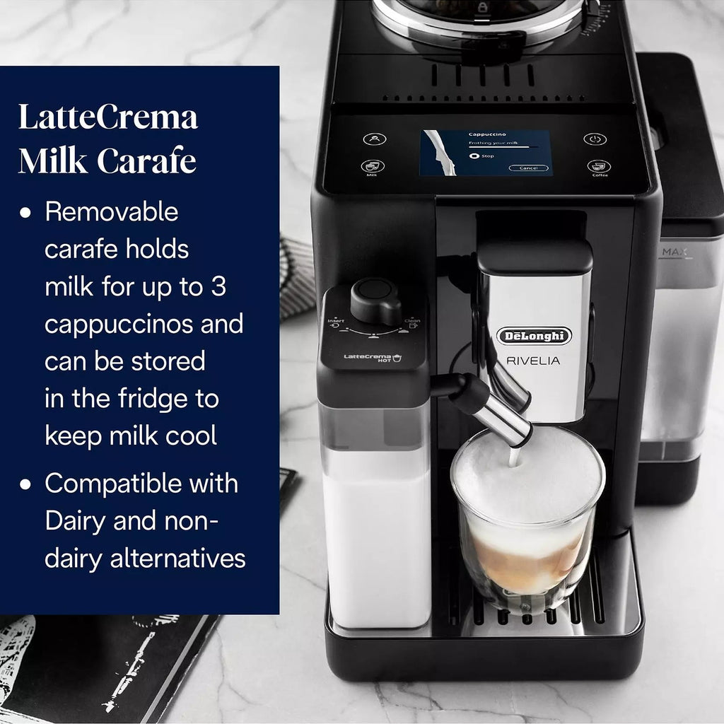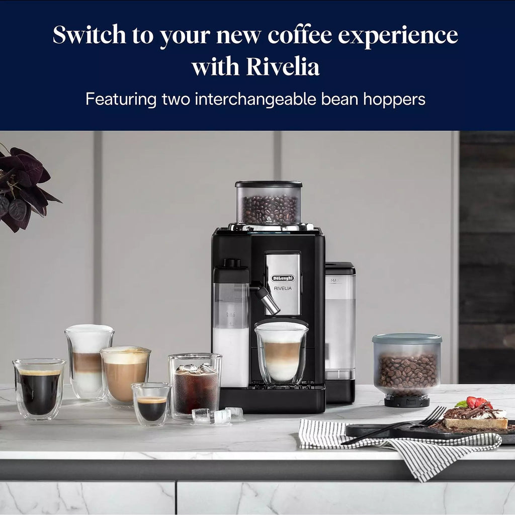 Immerse yourself in the world of coffee with Rivelia. Explore infinite bean varieties with Bean Switch System, enjoy an immersive experience with a 3.5" full-touch colour display, with rich animations and coffee routines tailored to you. Top your milk-based drinks with fine rich foam using LatteCrema Hot Technology, in a compact machine that fits your style.