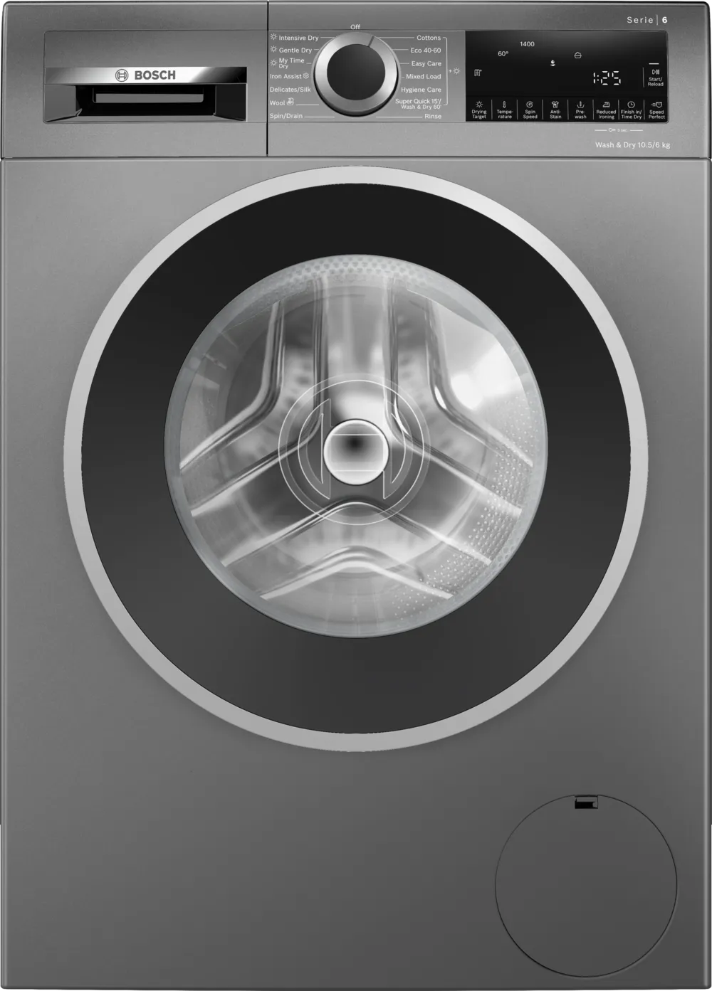 Series 6, Washer dryer, 10.5/6 kg, max. 1400 rpm, Cast iron grey