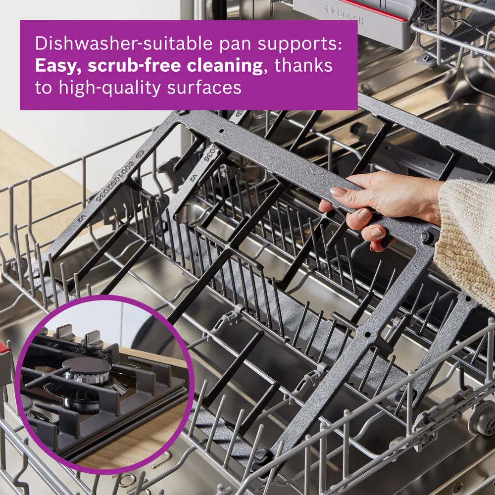 | Dishwasher suitable pan supports for easy cleaning. |