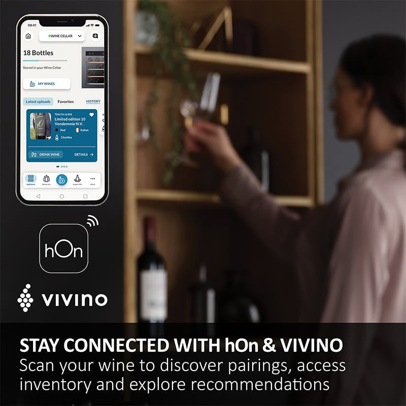 Discover more about the contents of your wine cooler thanks to our intuitive app “hOn”, developed in partnership with Vivino, the world’s largest global wine community. Scan your bottle’s label using the “Scan your Wine” feature to see information such as the winery it came from, the type of grapes used, the year of production and more. You can also see the user rating of each wine bottle and even discover new wines that match your tastes thanks to dedicated wine suggestions tailored to your personal preferences.