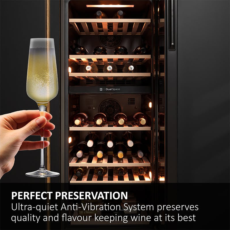 At 50cm wide, Haier's Wine Bank 50 range allows you to store your precious collection in the same conditions as a professional wine cellar. Storing your wine in the right conditions helps preserve the flavours and characteristics of a bottle, for an all-round more pleasant tasting experience once it's time to uncork. Haier's Wine Bank 50 Series 7 wine cellars are equipped with the natural air flow technology that keeps both the ambient temperature stable at the ideal level, as well as humidity at 50% to 70%. The active carbon filter keeps the air purified, while the anti UV glass door protects your wine from harmful light rays, delivering the perfect conditions for outstanding wine preservation. The Wine Bank 50 Series 7 wine cellars are WiFi connected and can be controlled remotely through our app ""hOn"".